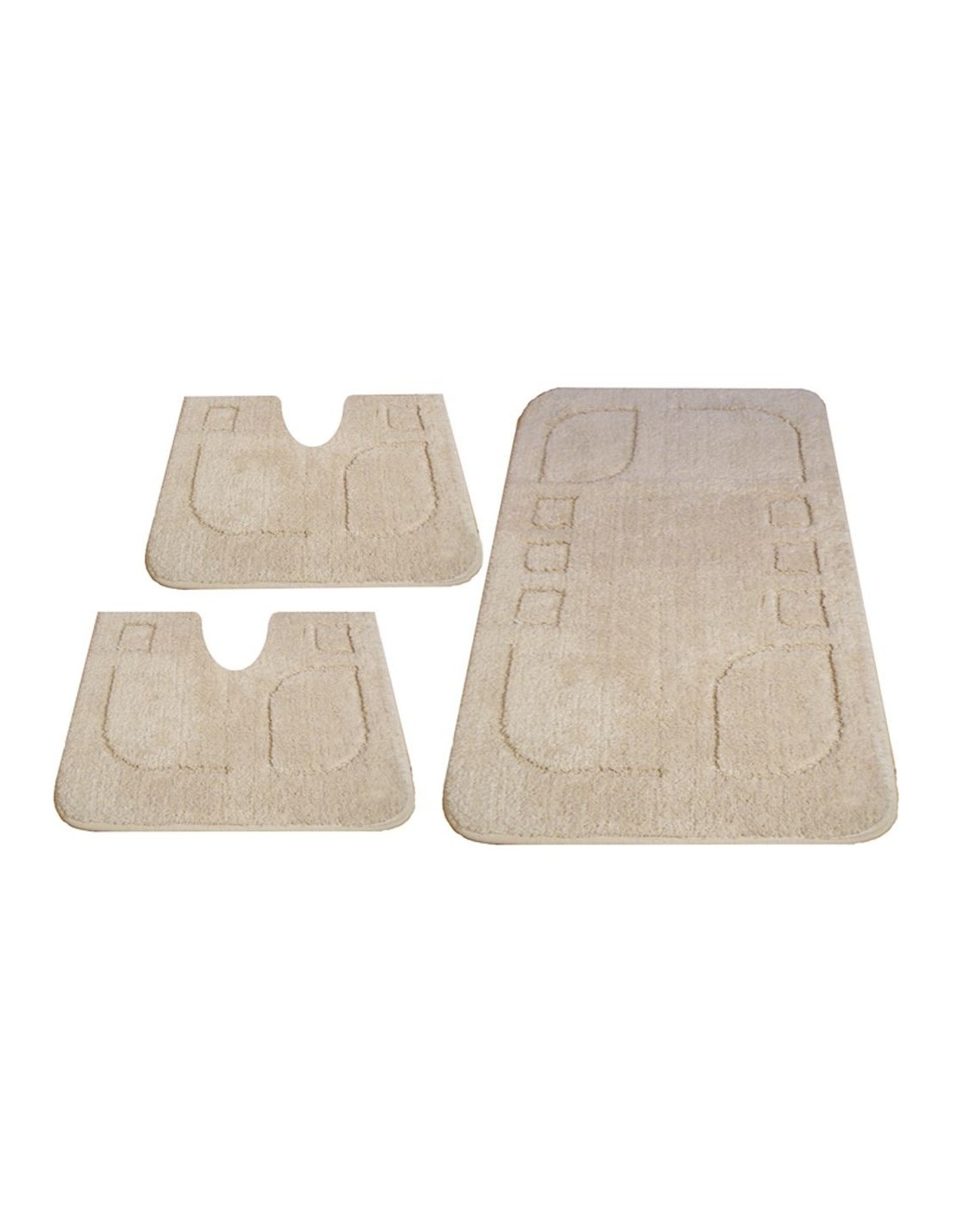 Parure di 3 tappeti da bagno dal design moderno, pratico, resistente e 100% naturale perchè completamente in cotone..