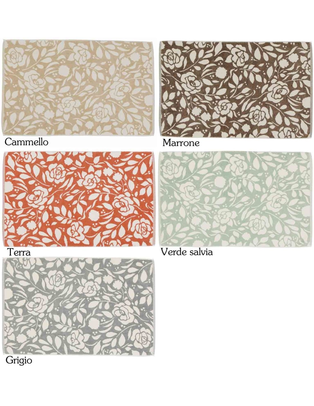 Un tappeto in puro cotone dal buon peso creato con la lavorazione spugna jacquard. Sul retro infatti troverai i classici ricciolini della spugna mentre il diritto ha il pelo tagliato a formare un morbido e soffice vellutino..