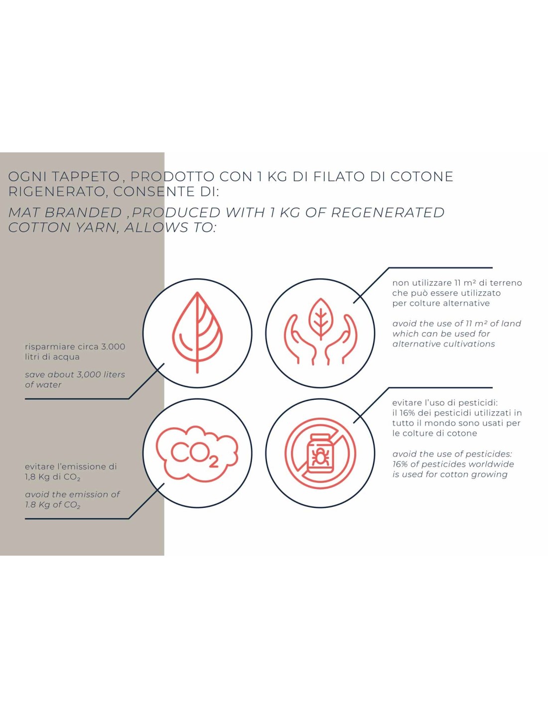 CARATTERISTICHE: Nasce da un insieme di processi industriali e manifattura artigianale per garantirti un prodotto italiano di alta qualità con grande attenzione per il dettaglio. Prodotto con tessitura Tufting e completato da un trattamento di finissaggio manuale..