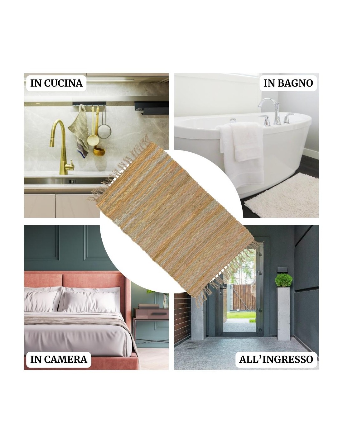 All'ingresso di casa sarà un valido aiuto per asciugare le scarpe nei giorni di pioggia, in cucina per assorbire le goccie che cadono durante la preparazione di pranzi e cene, in camera come scendiletto o in bagno come scendidoccia insomma dovunque tu voglia..